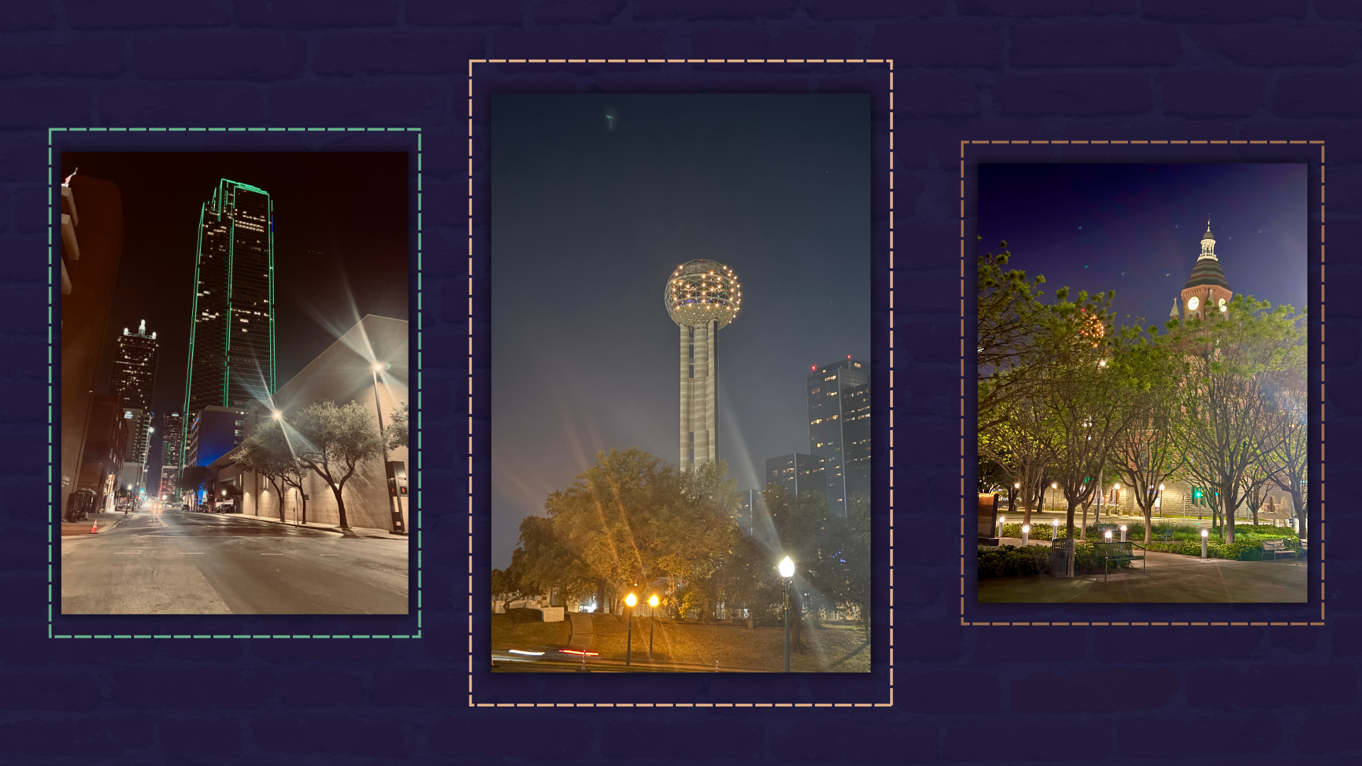 Left: Bank of America Building; Center: Reunion Tower; Right: The Old Red Courthouse